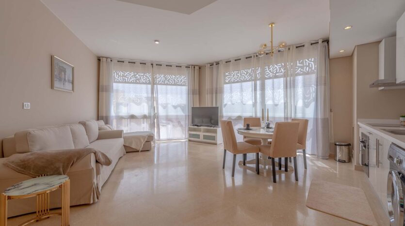 There is currently a partial construction view from the apartment onto the newly built complex behind